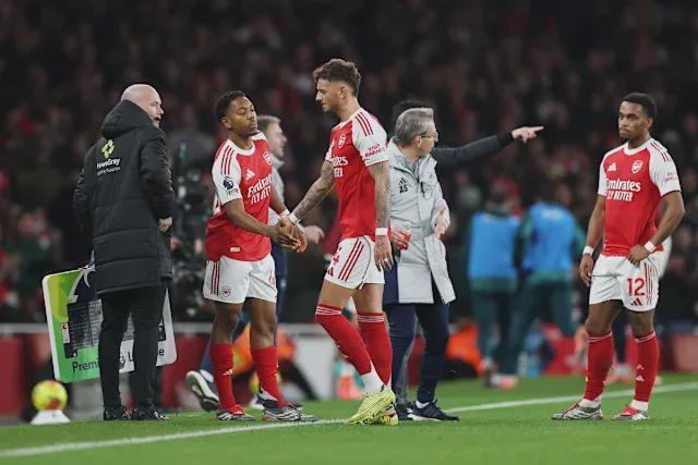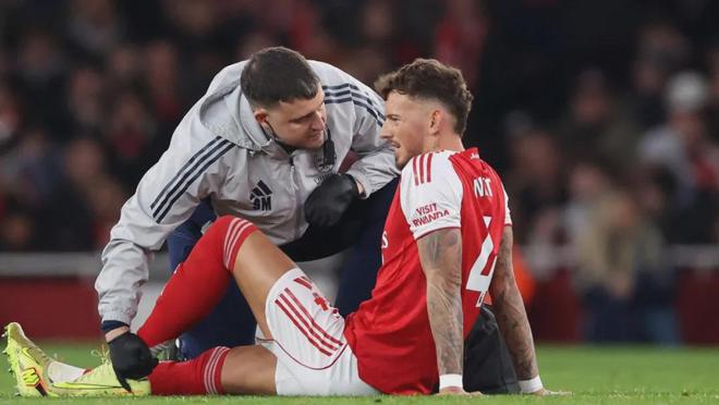 上周末,阿森纳在主场2-1险胜副班长狼队,在积分榜上继续保持2分的领跑优势。而在本场比赛中,阿森纳付出了惨痛的人员伤病代价。本·怀特在上半场因回追黄喜灿单刀时不幸拉伤,腿筋感到不适而被换下。主帅阿尔特塔在赛后接受采访时也表示:“本·怀特感觉自己的腿筋有些不适。这可不是个好消息。”